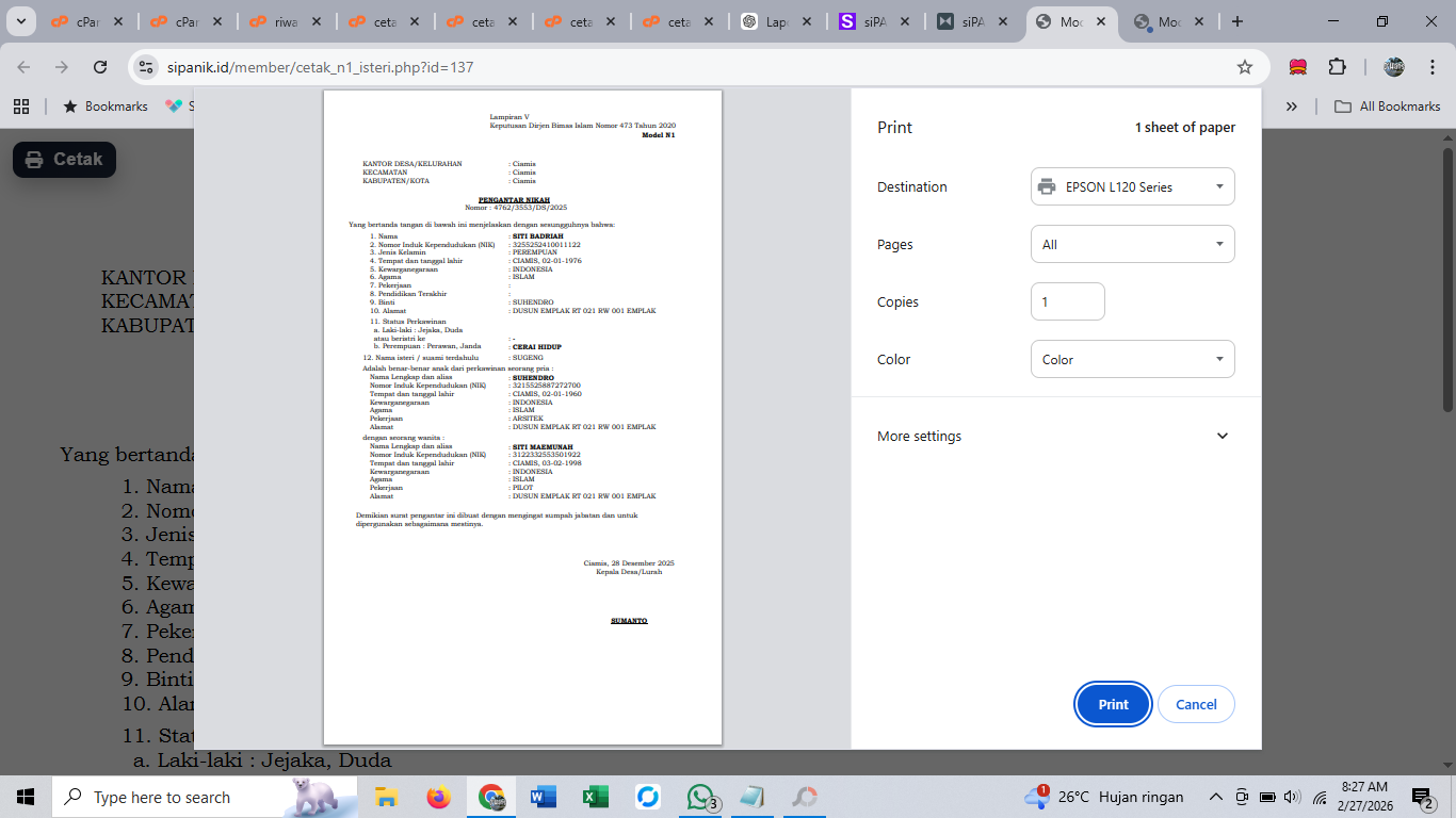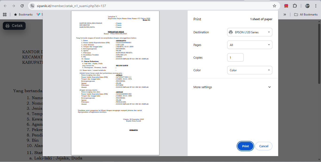 Cetak Berkas Nikah